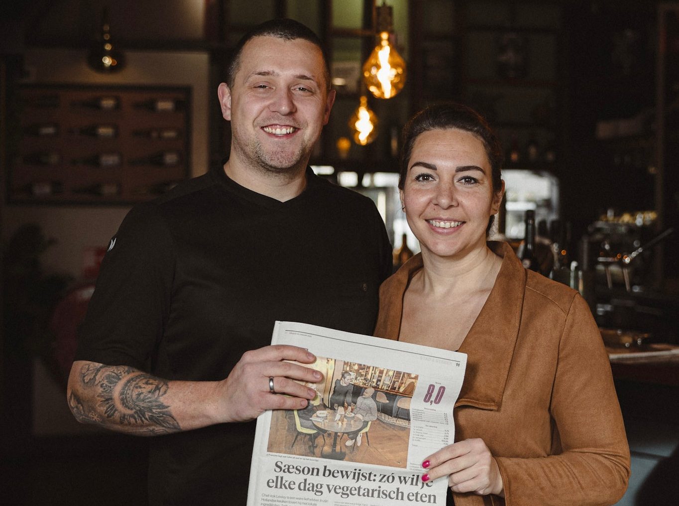 Lesley Hakken van restaurant Saeson in Apeldoorn zegt het alsof het de gewoonste zaak van de wereld is. En dat is het inmiddels ook voor hem. Maar drie jaar geleden namen hij en zijn vrouw Francine een bruine kroeg over waar hamburgers, steak en friet de kaart bepaalden. Een keuken die ze kleine stappen hebben veranderd. Sinds een jaar draait hun restaurant met 25 couverts op een dagelijks wisselend menu waarbij groenten de hoofdrol spelen. Geen personeelslid in de bediening, alles met z'n tweeën. En het loopt.